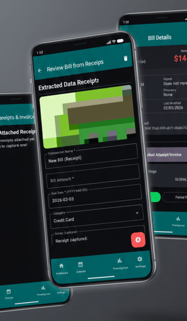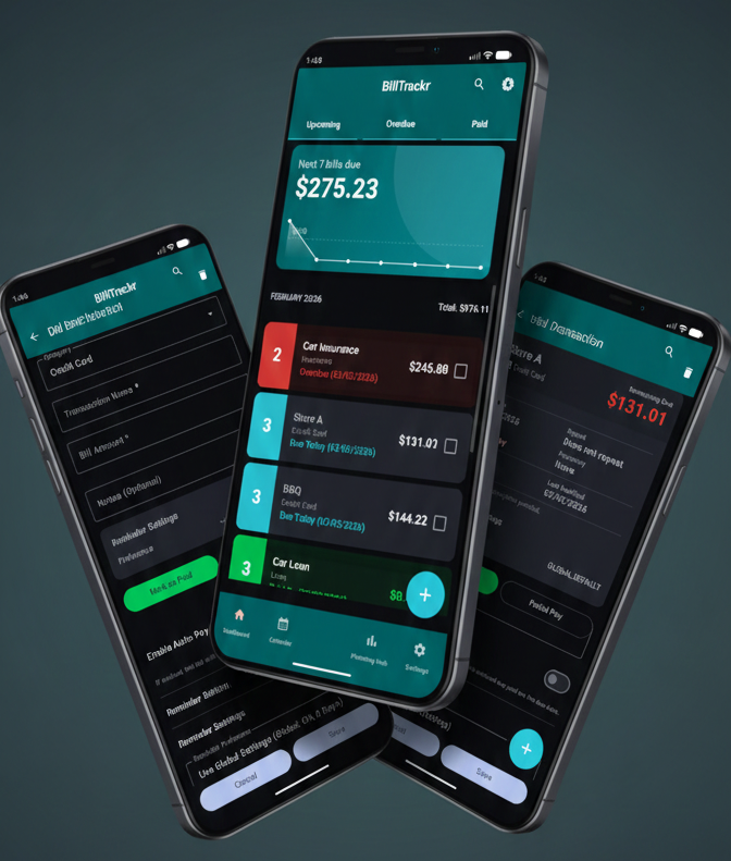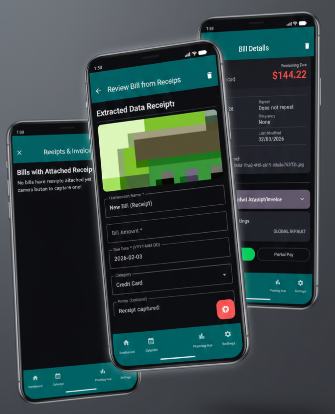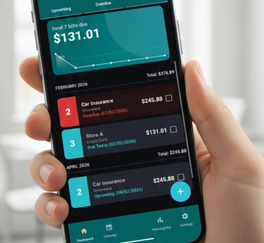 Gain total visibility over your finances with an intelligent dashboard designed to track upcoming, overdue, and paid bills in one secure, local-first platform.