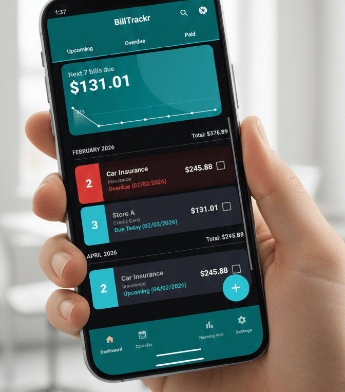 Watch this quick walkthrough to see how our intelligent dashboard organizes your finances into Upcoming, Overdue, and Paid statuses, giving you total visibility over every monthly commitment.