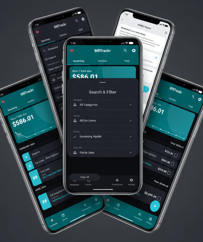 Custom Filters: Narrow your results by Category, Status (Upcoming, Overdue, Paid), or specific Date Fields.